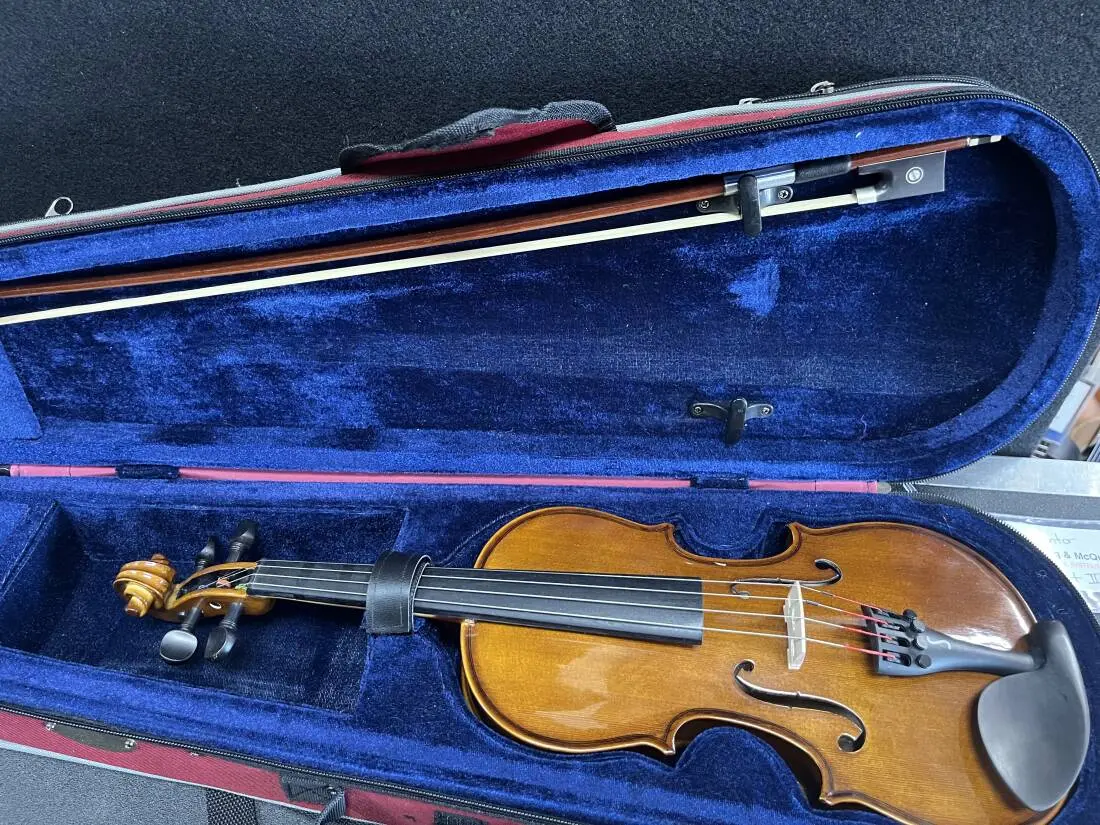 Stentor Student II Violin Outfits are higher grade instruments hand carved from selected tonewoods and with the advantage of ebony pegs and fingerboard, wood bow with ebony frog, and rope core strings.