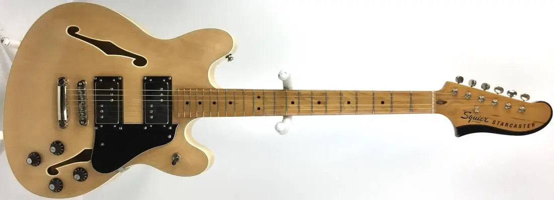 The Starcaster broke the mold of semi-hollow guitar design with its offset body shape when it was introduced in the '70s, offering versatile sounds and out-of-this-world styling for the most adventurous players. The Classic Vibe Starcaster is a throwback to the original Fender model, creating massive tone courtesy of its dual Fender-Designed Wide Range humbucking pickups. Player-friendly features include a slim, comfortable "C"-shaped neck profile with an easy-playing 9.5"-radius fingerboard and narrow-tall frets, as well as a stop tailpiece for solid tuning stability. This Squier model also sports a unique painted headstock contour, 1970s-inspired headstock markings, rich-looking nickel-plated hardware and a slick vintage-tint gloss neck finish for an old-school vibe.