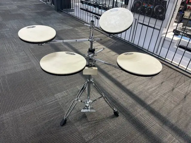 The 5-piece portable Go Anywhere™ Complete Practice Set allows you to sharpen your independence, groove, and coordination without bothering others. Notable features include heavy duty construction, natural feel and rebound, and easy setup.