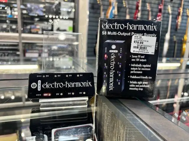 If you're tired of noise in your signal chain and if you want to be sure your carefully selected pedals are getting consistent current for their best performance, the EHX S8 Multi-Output Power Supply is your go-to solution. It powers up to eight individual effects pedals.