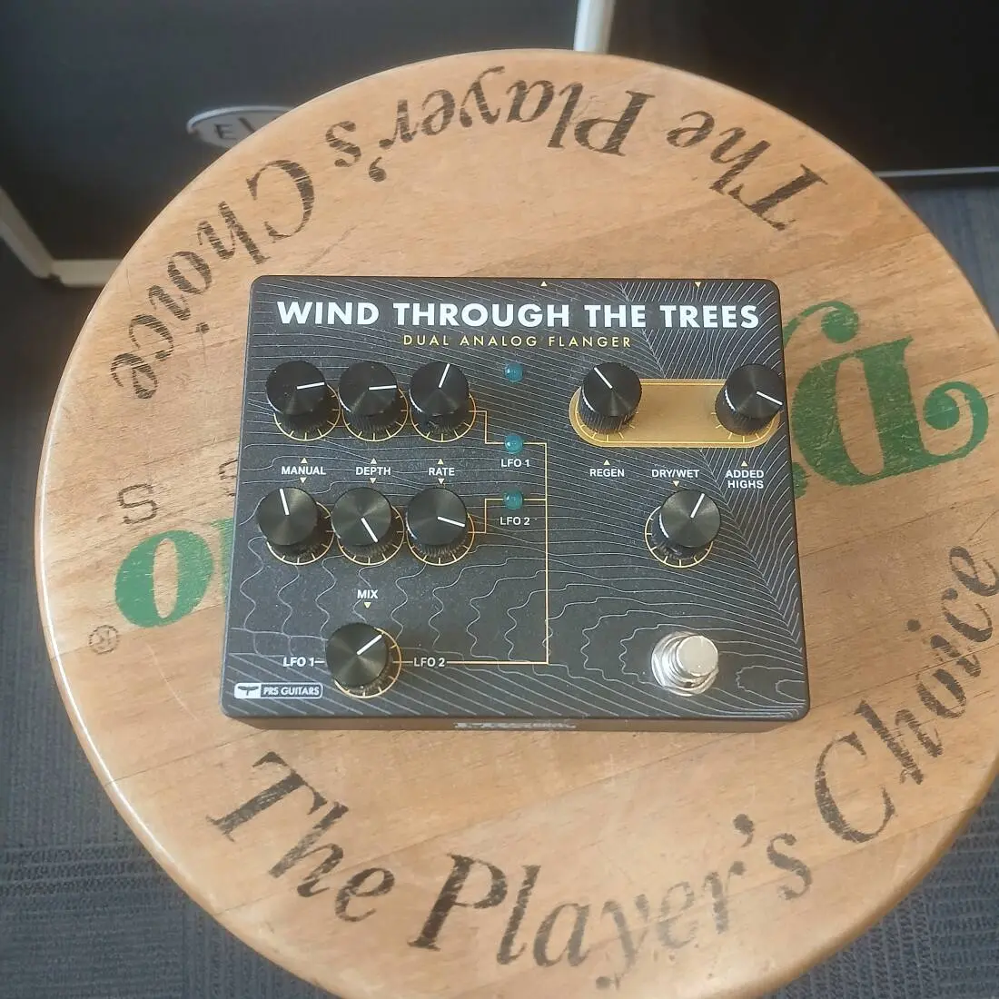 The PRS Wind Through the Trees dual analog flanger pedal is best described as two flangers fighting each other, resulting in a sound reminiscent of the wind whipping through the trees. With Manual, Depth, and Rate controls per flanger as well as global Regeneration and Added Highs, Wind Through the Trees offers nearly endless tonal possibilities. Bottom line, Wind Through the Trees offers hours of fun for any player.
