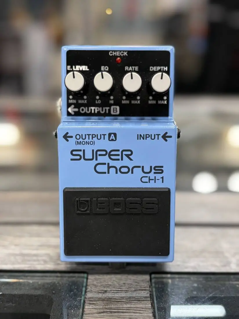 The CH-1 Super Chorus pedal delivers a clean classic chorus sound with crystal-clear highs and a unique stereo effect, variable between left and right speakers.