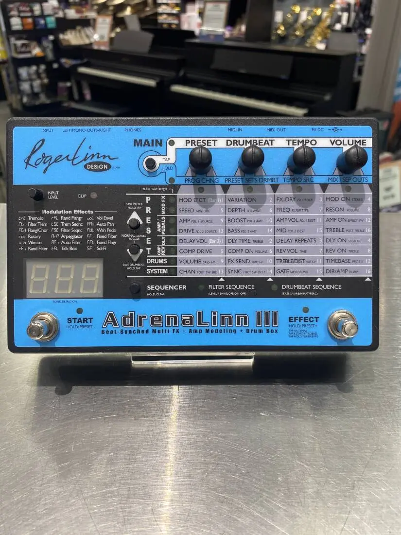 The Roger Linn AdrenaLinn III is a more of a workstation than a traditional guitar pedal, with filter sequences, random filter patterns and beat-synced modulation tied to a MIDI clock or internal drumbeat. Listen to the intro of John Mayer's "Heartbreak Warfare" for an example of what this unit can do.