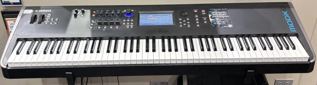 The 88-note weighted Graded Hammer Action MODX8 comes in at a svelte 30.4 lbs.