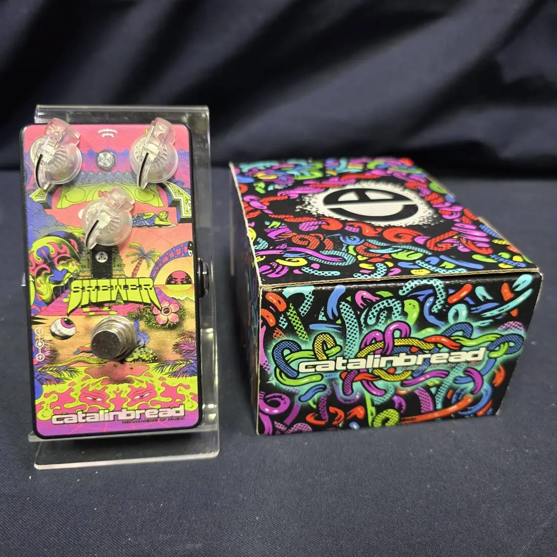 One of Blackmore's most recognizable pieces of gear is his old Hornby Skewes Treble Booster, a version of the classic effect used by too many artists to list. While almost all of them used a Rangemaster, the Hornby-Skewes version came stock with a silicon transistor for a more biting sound that cut through even the densest of mixes. The SKEWER stays true to that circuit, giving the old JHS unit the same treatment as the Naga Viper. This lets you dial in the desired frequency range from rich and full to treble-heavy, as well as control the amount of boost. You can also vary the amount of transistor gain for some extra juice. Of course, because it's Blackmore we're talking about here, he had his original Treble Booster modded to play nicer with the rest of his gear. Catalinbread has given you that mod as well, which is fully adjustable via the trimpot inside. Further enhancements include a noise reduction filter and anti-pop switch circuitry. This one bites just a little harder than the Naga Viper, and sounds fantastic with the DREAMCOAT.