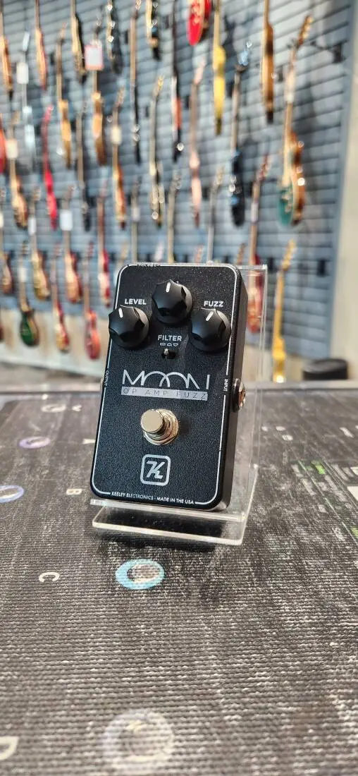 The Moon's massive sound is achieved with a quad op amp delivering four stages of gain and fuzz. This circuit has its roots in Keeley's popular Dark Side pedal. In that design they tailored the tone and gain of the pedal to be a vintage sounding fuzz for lead work. Keeley wanted to go 180 degrees in the other direction with the Moon's tone.