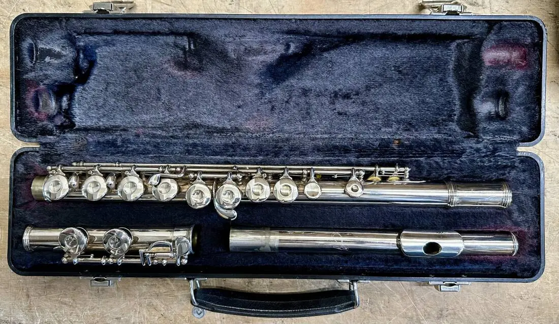 Our "Classic" closed hole model for beginning students. Played and recommended for generations by teachers worldwide, this model is the first choice in the American tradition for learning the flute. This silver-plated model includes a "Progressive" style headjoint which flute teachers have chosen for its crisp response and ease of playing. Key cups are our special signature flat cup to help prevent air leakage. Heavy plating and sturdy mechanism assure that your student will play this model for years to come. The adjusting screws are top mounted. This is the preferred mechanism for easy repair.