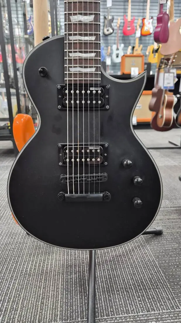 Extended range guitars don't have to cost an arm and a leg to be great. The LTD EC-257 (seven-string) and EC-258 (eight-string) guitars are affordable for just about any musician, and allow you to explore the depths of lower pitches for today's modern sounds. These guitars feature excellent ESP Designed pickups, comfortable mahogany bodies, three-piece mahogany necks, and roasted jatoba fingerboards with 22 extra-jumbo frets. The EC-257 offers a TOM bridge and tailpiece, while the EC-258 features a hardtail design. Both are available in Black Satin finish.