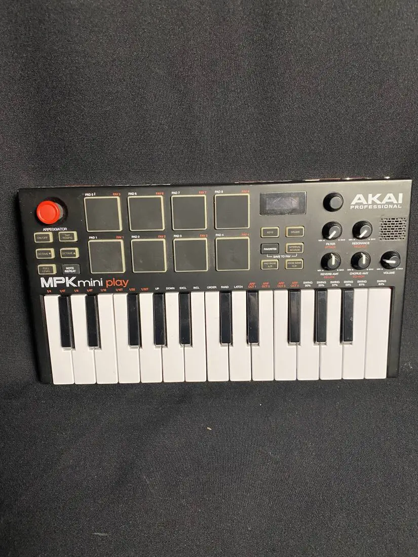 The ultra-portable MPK Mini Play is based on the world's most popular midi controller - Akai Professional's MPK Mini - but now it comes packed with 128 sounds and its own built-in speaker. With 8 backlit MPC drum pads and a 4-way joystick for simple control, players have all they need to play their music anytime, anywhere. Four knobs (two banks capable of controlling eight different parameters) can be used to tweak sounds and edit multiple parameters in real-time, giving musicians even more performance possibilities. Powered by 3 "AA" batteries, the MPK Mini Play is built for hours of wireless fun.