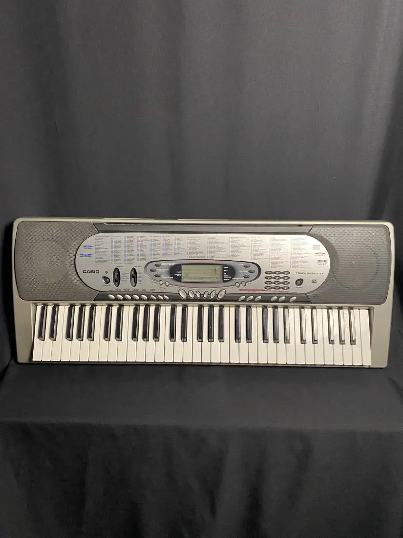 CASIO 61 KEY PORTABLE KEYBOARD 61-key touch-sensitive portable electronic keyboard released around 2001, designed for beginners and learners. It features 137 tones, 100 rhythms, a 3-step learning system, and traditional MIDI ports, making it a budget-friendly option for a MIDI controller. It often powers with a 9V adapter or batteries.