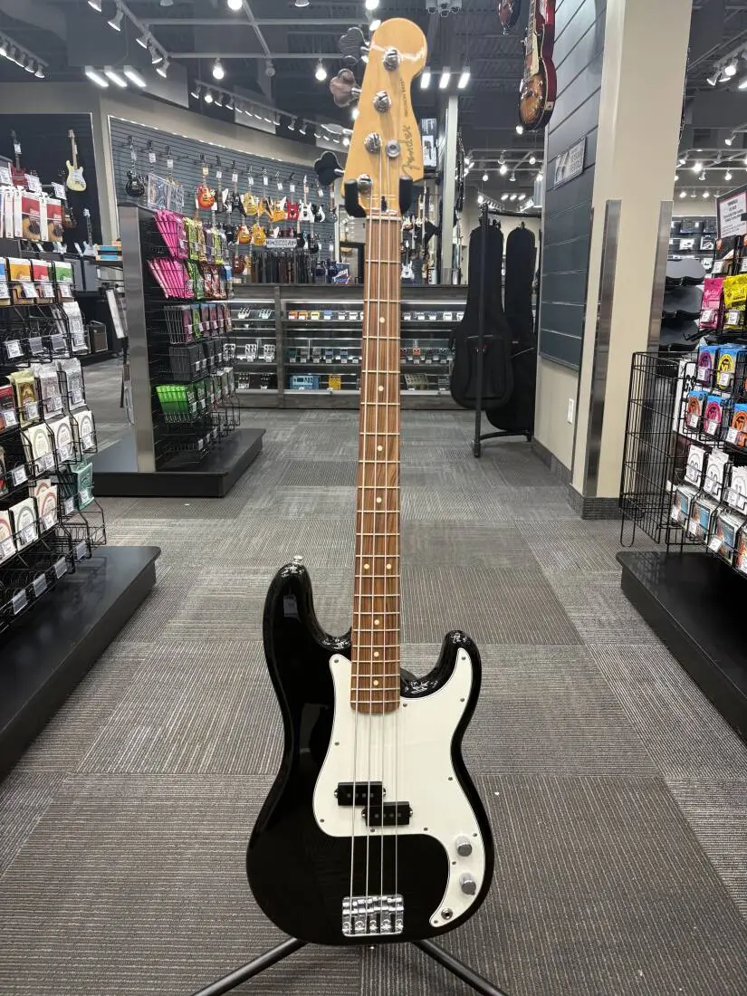 Parmi ses autres caractéristiques, on retrouve un pickguard 3 plis, un sillet en os synthétique, des guides-cordes à disque de style vintage, des mécaniques ouvertes et une plaque de fixation du manche à quatre vis estampillée « F », gage d'authenticité : une véritable Fender. Classique moderne au son, au style et au toucher Fender authentiques, la Player Precision Bass est prête à délivrer des basses puissantes et profondes.