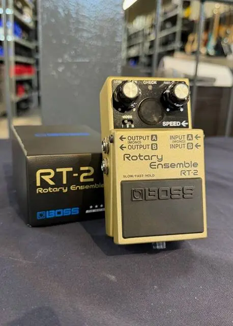 Rotary speaker cabinets sound amazing, but their size and weight make them impractical for anyone but the most dedicated vintage enthusiasts. Powered by the latest BOSS advancements, the RT-2 Rotary Ensemble distills this expressive spatial effect into a footprint that's easy to integrate into every setup. This powerhouse pedal authentically recreates the complex sonic magic of its inspiration, supported by three sound modes, deep tonal shaping, and advanced operation with the onboard pedal switch and external control.