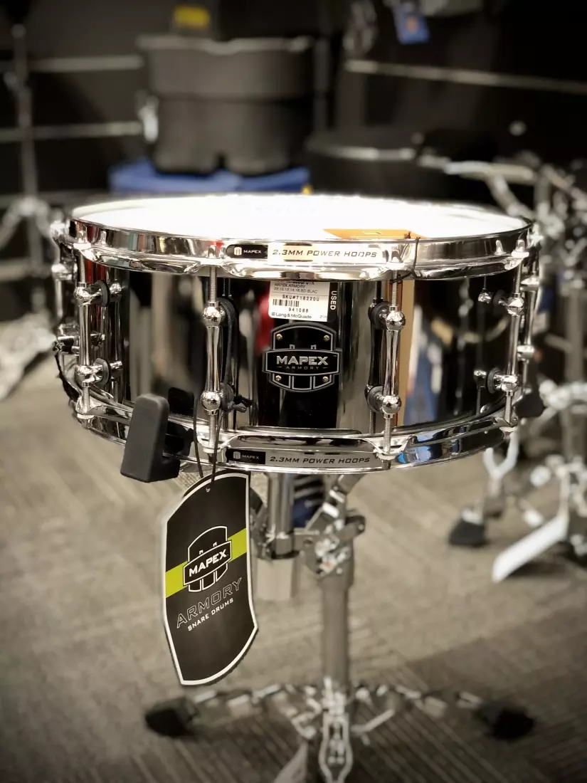 Made with a 1mm stainless steel shell, the Armory Series Tomahawk Snare from Mapex has penetrating accuracy and long range projection. The focused power of its rimshot is resonant. The steel shell features a rounded 45-degree bearing edge for focused brightness with plenty of volume.