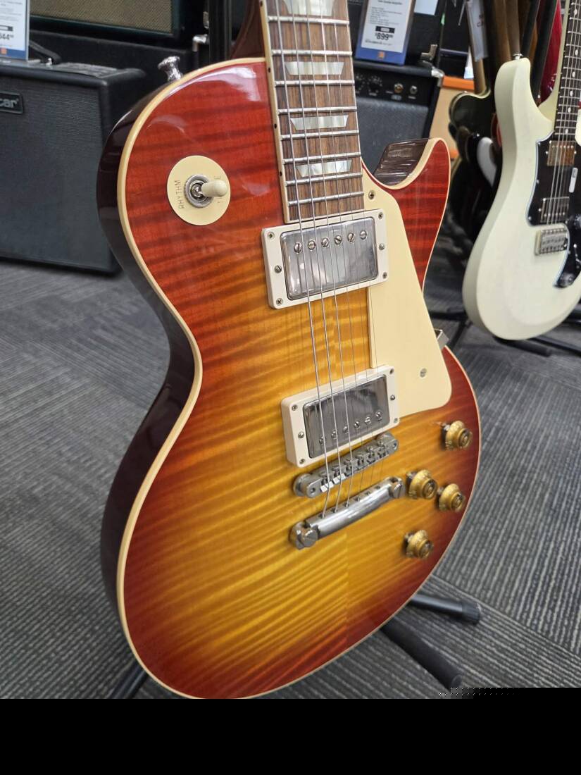 Gibson Custom Shop's 1959 Les Paul Standard Reissue is not just a tribute to the priceless original models -- it's a clone of them. From laser-scanned dimensions to chemically-recreated plastics to colour-matched shades of sunburst, every element has been rendered in unbelievable detail. It represents the culmination of decades of work by Custom Shop's expert team -- a tireless quest to bring accuracy and authenticity to the hands of fans. Its the definition of cool, and it's the best representation of the 1959 Les Paul Standard since the Gibson Custom Shop began making Historic Reissues over twenty-five years ago.