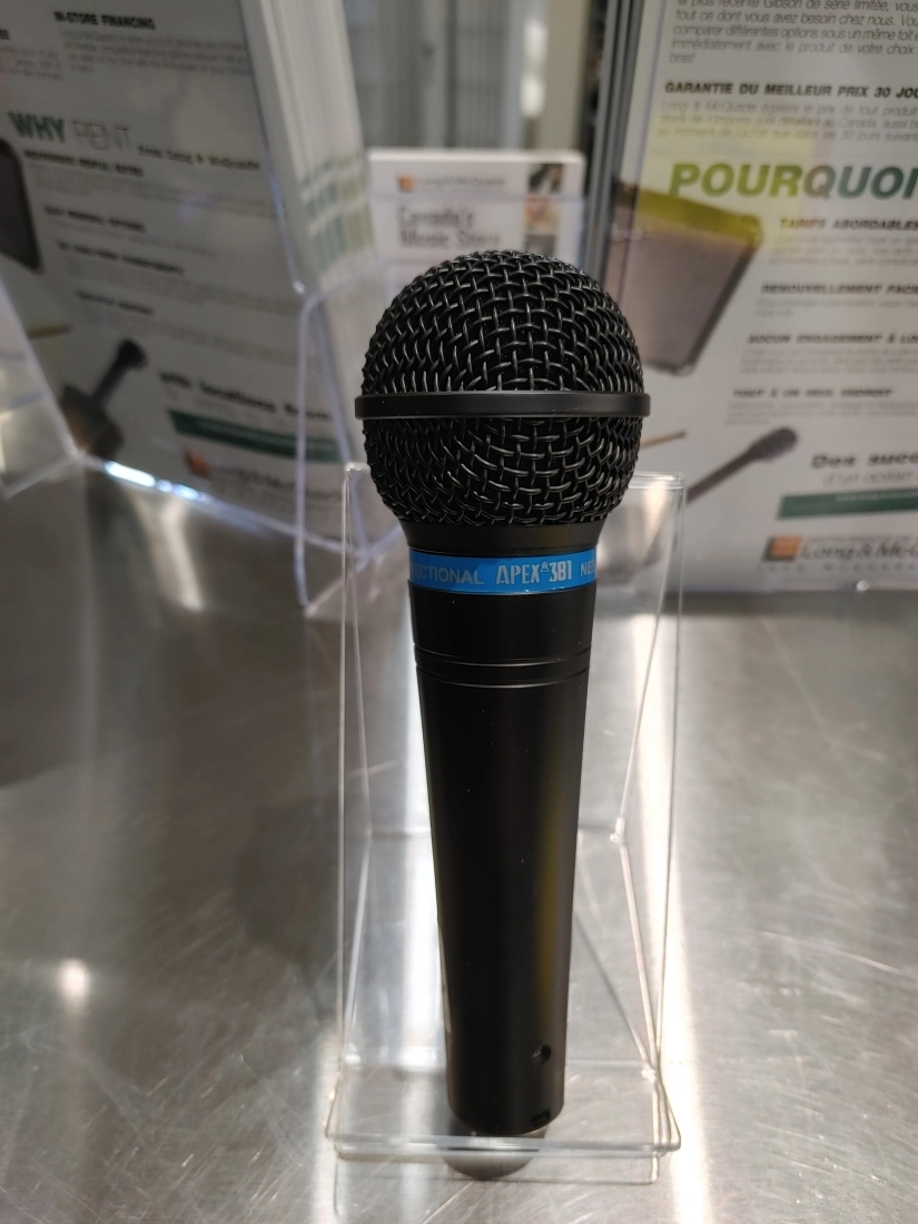 The Apex381 is a low impedance, dynamic microphone with exceptionally high sensitivity and linear response. It features a high energy, rare-earth neodymium magnet, double dome-diaphragm and an aluminum alloy voice coil designed to provide incredibly high output. Its tight cardioid pattern maximizes gain before feedback for outstanding live performance.