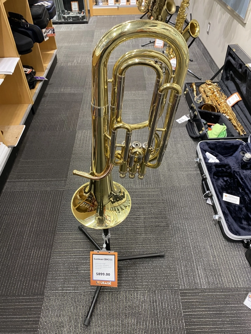 A well-made, traditional British baritone. An elegantly designed instrument with light and quick valve action, the EBH311 has solid response qualities throughout its range. Intonation is excellent through to the pedal Bb and natural A.