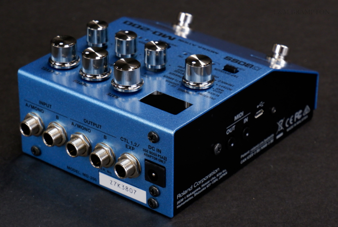 By default, the MD-200's multi-function footswitches control bypass, memory scrolling, and tap tempo, but you can easily reassign them to alternate functions as needed. External control is also possible via footswitches or an expression pedal, and MIDI I/O is even provided on space-saving mini TRS jacks. Via MIDI, you're able to chain multiple 200 series pedals and select memories on all of them at once, and also control various functions from MIDI devices like the ES-8 and ES-5 effects switchers.