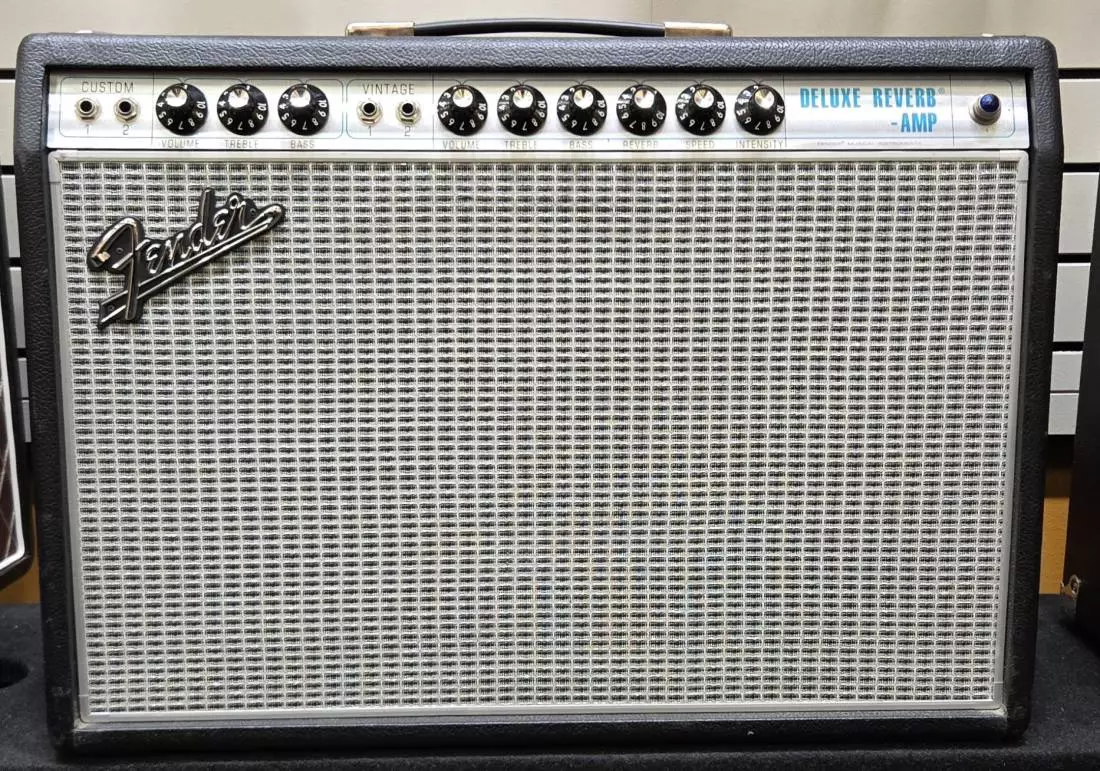 The 68 Custom Deluxe Reverb Amp pays tribute to the classic look, sound and performance of Fender's late-60s silverface amps. In a special twist, both channels boast reverb and tremolo, and the custom channel has a modified Bassman tone stack that gives modern players greater tonal flexibility with pedals. The amp also features quicker gain onset and reduced negative feedback for greater touch sensitivity. The 68 Custom Deluxe Reverbs single 12 Celestion G12V-70 speaker also delivers a more distinctively rock n roll flavor.