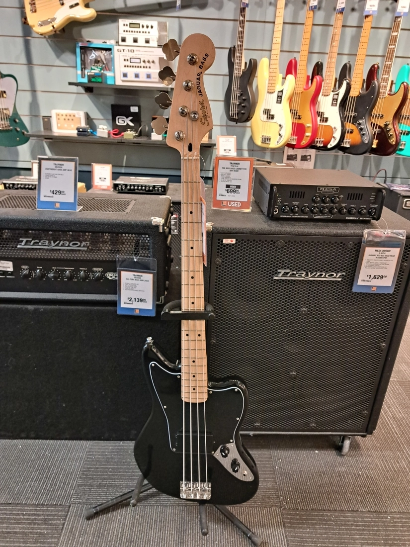 A superb gateway into the time-honoured Fender® family, the Squier® Affinity Series™ Jaguar® Bass H delivers legendary design and quintessential tone for today's aspiring bassist. This Jaguar Bass features several player-friendly refinements such as a thin and lightweight body, an easy-playing 32" medium scale length, and vintage-style open-gear tuning machines for smooth, accurate tuning. Loaded with a Squier humbucking pickup for fat, punchy tone, this model is ready to help lay the foundation for any player at any stage.