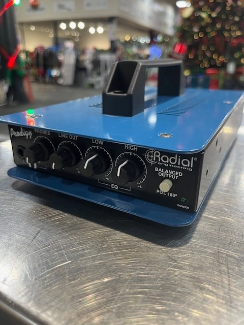 Like the larger Headload, the Prodigy employs custom made cement-encrusted ceramic-coated resister coils to convert the excessive power from the amplifier to heat and is able to comfortably withstand up to 100 watts RMS. The Prodigy may be used in three different ways, depending on the need: First, it may be used as a direct box via the built-in Radial JDX Reactor. The hugely popular JDX combines a reactive load with a proprietary filter bank to emulate the tone of a 4 x 12 half stack. This features 100% discrete class-A circuitry for optimal tone and transformer isolation to eliminate hum and buzz caused by ground loops. Designed to replace a microphone, the JDX delivers greater consistency while eliminating concerns such as stage resonance, bleed from other instruments and problematic room acoustics which can play havoc on the tone.