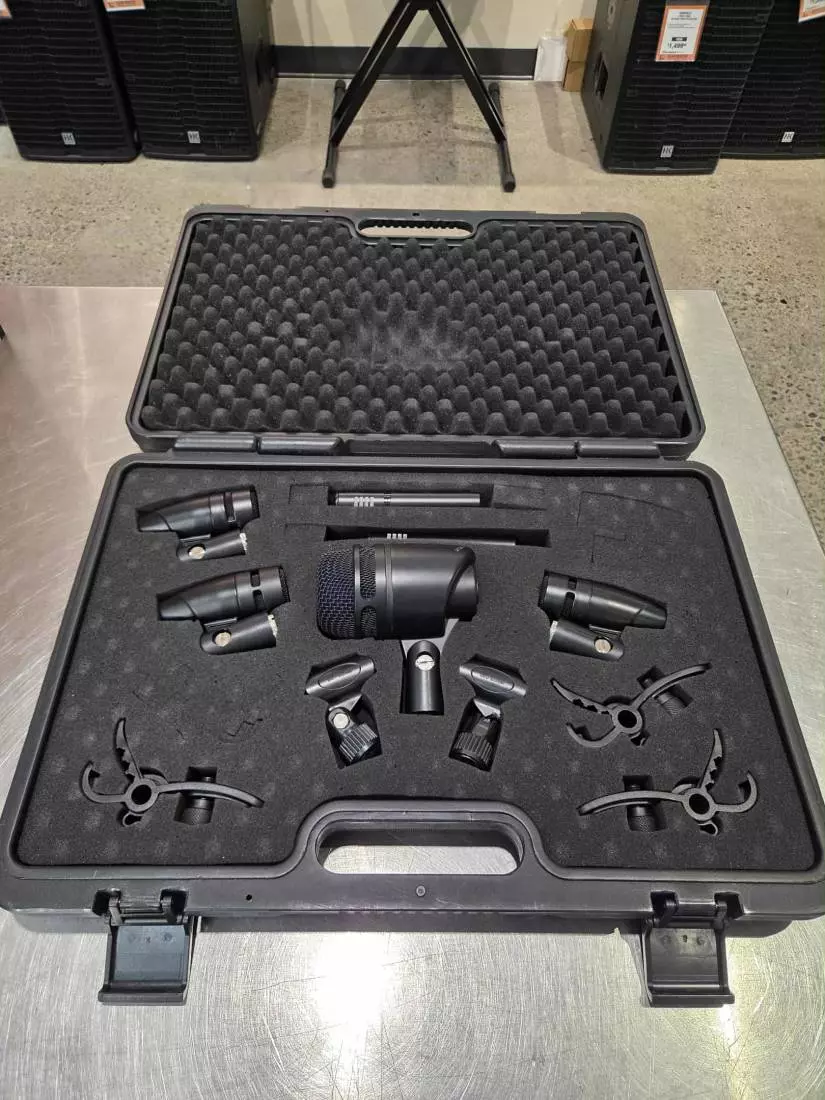 The Apex-DP6 drum pack contains all of the microphones necessary for miking the drum kit in most live of studio applications. Specialized dynamic mics for the snare & toms as well as a large diaphragm dynamic mic for the kick drum cover the basic kit. Two highly effective pencil condenser microphones are included for use on hi-hats, accessory percussion or for use as overheads.
