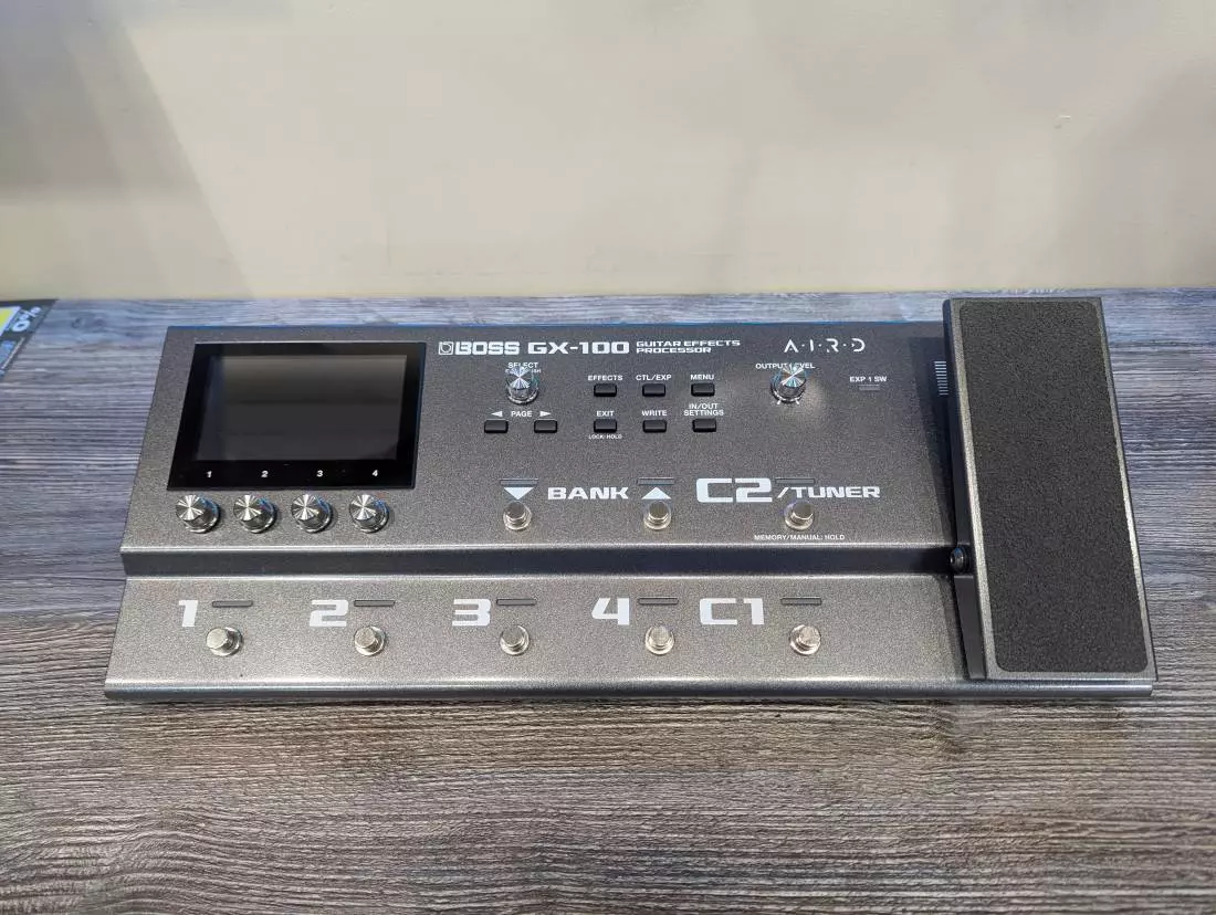 Fusing advanced BOSS tone technologies into a sleek, ultra-modern hardware design, the inspiring GX-100 delivers top-level performance everywhere you play. Explore 23 AIRD amplifiers and over 150 effects derived from the flagship GT-1000, and craft great sounds in seconds with the intuitive color touch display. Up to 15 simultaneous effect blocks provide unlimited tone possibilities, coupled with deep real-time command via onboard footswitches, an expression pedal, and external control support.