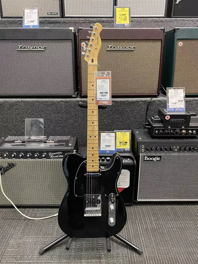 The pair of Player Series single-coil Telecaster pickups are crisp and articulate - it's authentic Fender tone with a modern edge. The "Modern C"-shaped maple neck's comfortable contours and smooth finish are ideal for almost any playing style. The addition of a 22nd medium jumbo fret to the contemporary 9.5"-radius fingerboard makes it easier to express yourself musically. To enhance the traditional twang and bite of a Telecaster, Fender added bent-steel saddles to the string-throughbody bridge for precise intonation and to help your sound cut through the mix, sustaining until the sun burns out. Other features include master volume and tone controls, a 3-way pickup switch with barrel tip, 3-ply pickguard, synthetic bone nut, dual-wing string tree, sealed tuning machines and four-bolt "F"-stamped neck plate that marks this instrument as the real deal - as Fender as it gets.