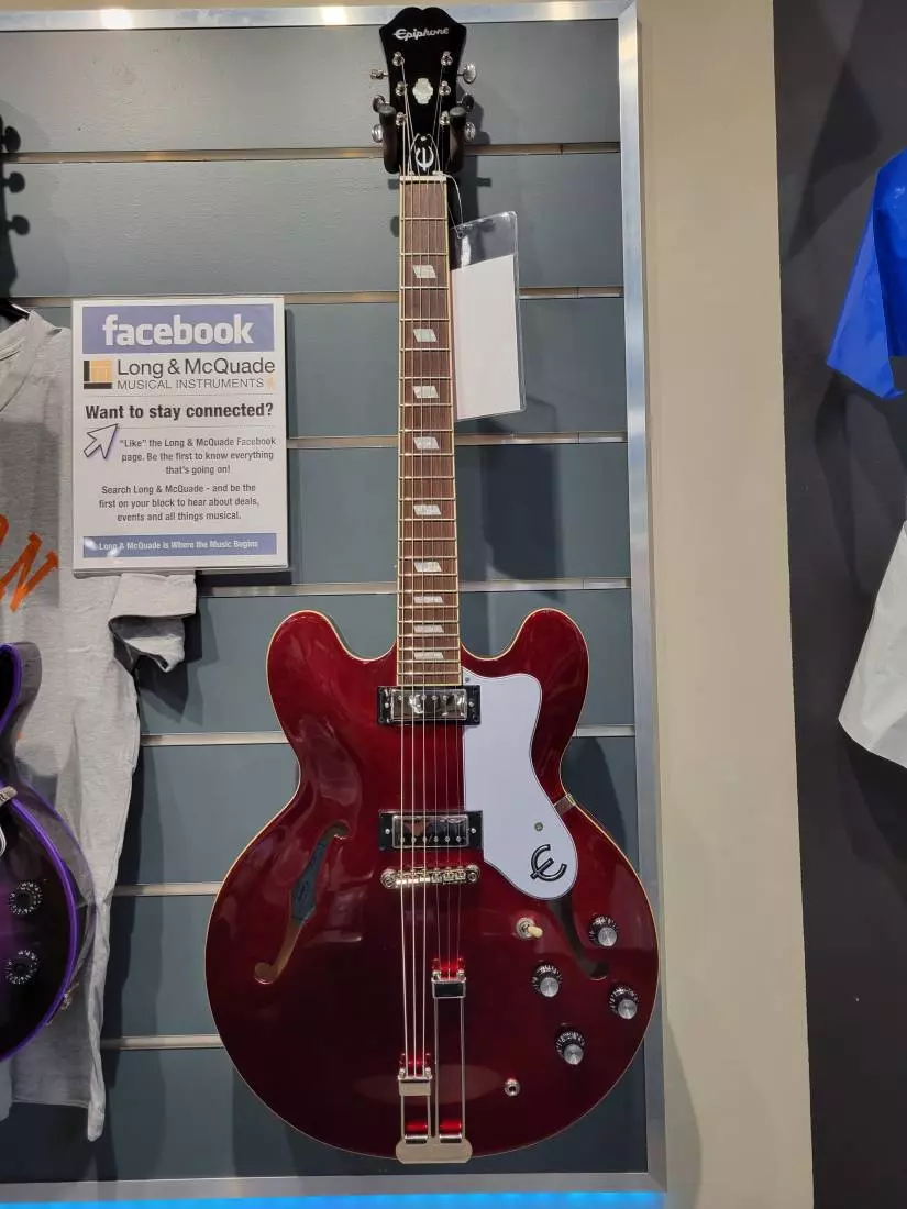 The Epiphone Riviera, one of Epiphone's original, most enduring classics makes a comeback! First introduced in the early 60s, the Epiphone Riviera's semi-hollow design has been a favourite of players from all genres and generations including blues greats Robben Ford and Otis Rush, Lou Reed of the Velvet Underground, and The Strokes' Nick Valensi, who have all found that the Riviera's legendary ES™ body shape can produce great tones with any pickup variation. This Riviera features a layered maple top back and sides, a 3-layer pickguard with the classic metal Epiphone E, and comes equipped with Epiphone's LockTone™ Tune-O-Matic™ adjustable bridge and Frequensator tailpiece. Available in Royal Tan and Sparkling Burgundy full gloss finishes.