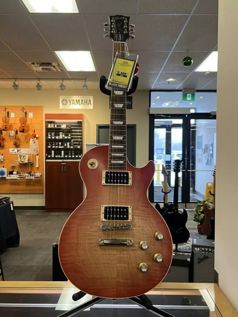 The new Les Paul Standard 60s Faded returns to the classic design that made it relevant, played, and loved - shaping sound across generations and genres of music. It pays tribute to Gibson's Golden Era of innovation and brings authenticity back to life. The Les Paul Standard 60s features a satin nitrocellulose lacquer finish that gives it the look and feel of a long-treasured musical companion. It has a solid mahogany body with an AA figured maple top and a SlimTaper 60s-style mahogany neck with a rosewood fingerboard and trapezoid inlays. It's equipped with an ABR-1 Tune-O-Matic bridge, aluminum Stop Bar tailpiece, Grover Rotomatic "Kidney" tuners, and gold Top Hat knobs with Silver Reflectors and Dial Pointers. The open-coil Burstbucker 61 R (neck) and Burstbucker 61T (bridge) pickups are loaded with Alnico 5 magnets and hand-wired to audio taper potentiometers and Orange Drop capacitors.