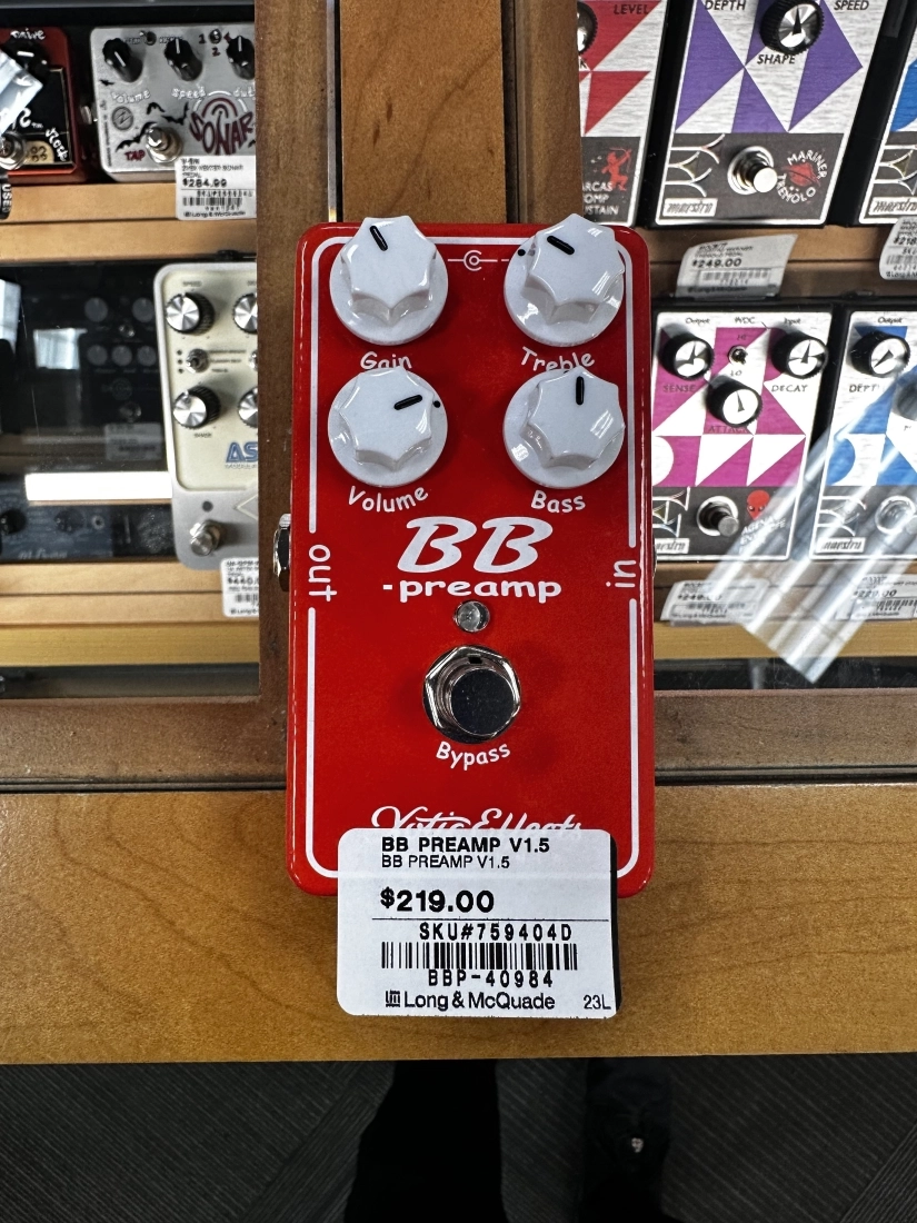 The BB Preamp offers a wide varriety of sounds. It's capable of a 30dB+ clean boost with an adjustable +/-15dB two-band active EQ which adds a wide range of harmonic content to your ideal sound. The BB also utilizes a pre-gain stage which allows the Pedal to go from a very pristine clean to a very smooth, compressed overdriven sound. True bypass for eliminating any signal interference when switched off.
