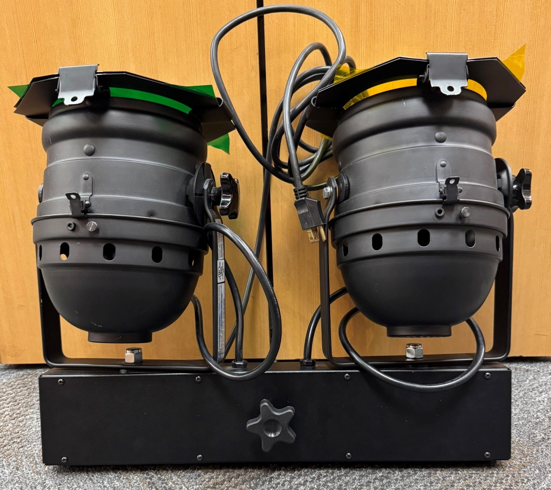 The LP-302 comes with twp 300-Watt Par 56 cans with four gels and bulbs and is swivel-mounted on a steel frame which houses a four-channel dimmer pack. All dimmer functions and programs are regulated exclusively by the LP-608 foot controller. Standard XLR balanced microphone cables are used for connecting the LP-608 and multiple LP-302s may be interconnected simply by "daisy chaining" them with similar cables.