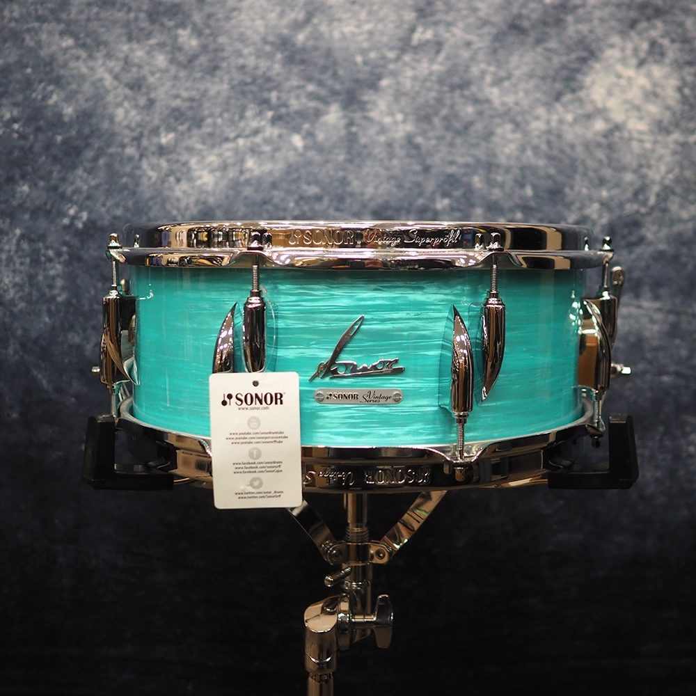 Features Sonor's cross laminated tension free shells, Super 50 snare strainer, superprofile hoops, tune safe lugs and 24 strand Sonor stainless steel snare wires.