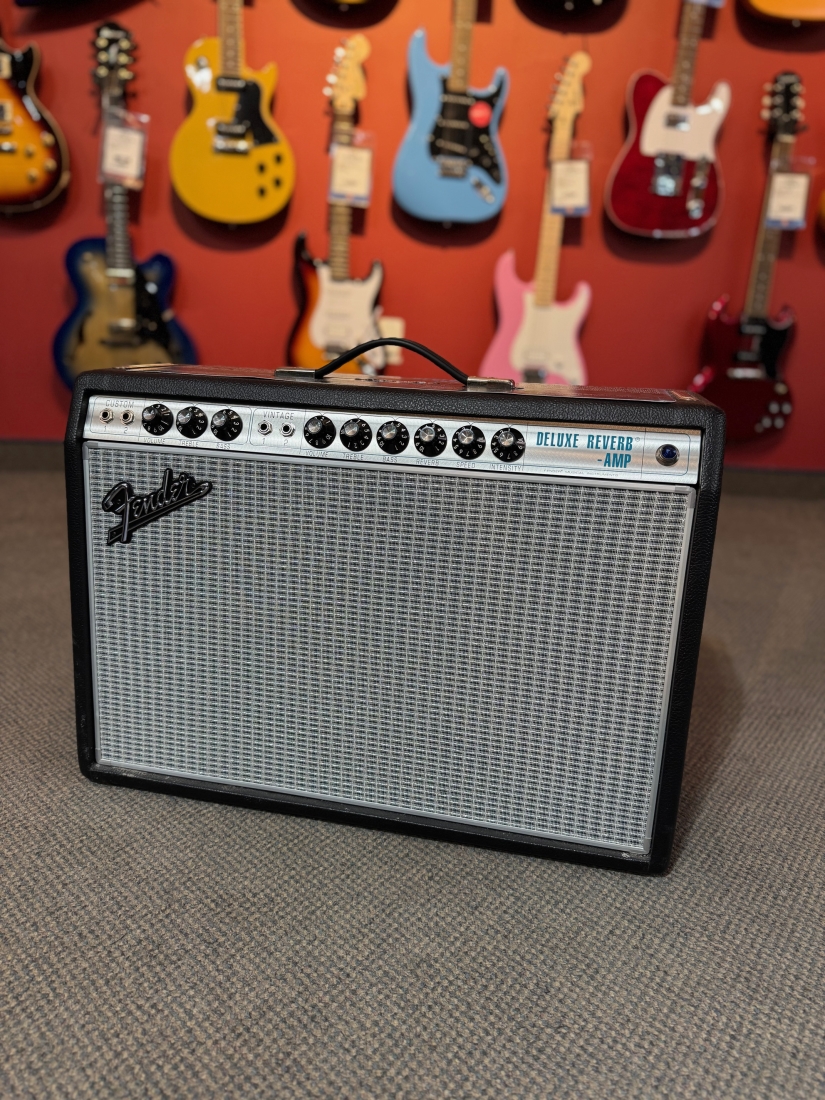 1968 was a transitional year for Fender amps, with tone that was still pure Fender but a look that was brand new. With a silver-and-turquoise front panel and classy aluminum drip edge grille cloth trim, the Deluxe Reverb received a fresh new face as it remained the ideal recording and performing amp. Small, light and moderately powered, it produced big tube tone, with world-class Fender reverb and vibrato effects. For countless guitarists ever since, the Deluxe Reverb has been the go-to amp for classic Fender sound.