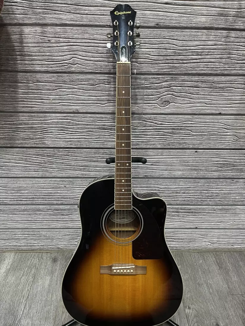 The AJ-220SCE has long been one of Epiphones best selling acoustic guitars with the look, sound, and build quality that first time players and professionals expect to hear when they pick up an Epiphone. The Advanced Jumbo style was first produced at the legendary Kalamazoo factory in the 1930s has been a favorite of musicians from every field of popular music ever since. The Advanced Jumbo sound is commanding when required but its also well balanced which makes it perfect for stage and studio. Now with a killer cutaway and Fishman's Sonicor pickup and Presys II preamp system, the AJ-220SCE takes yet another step above the competition.