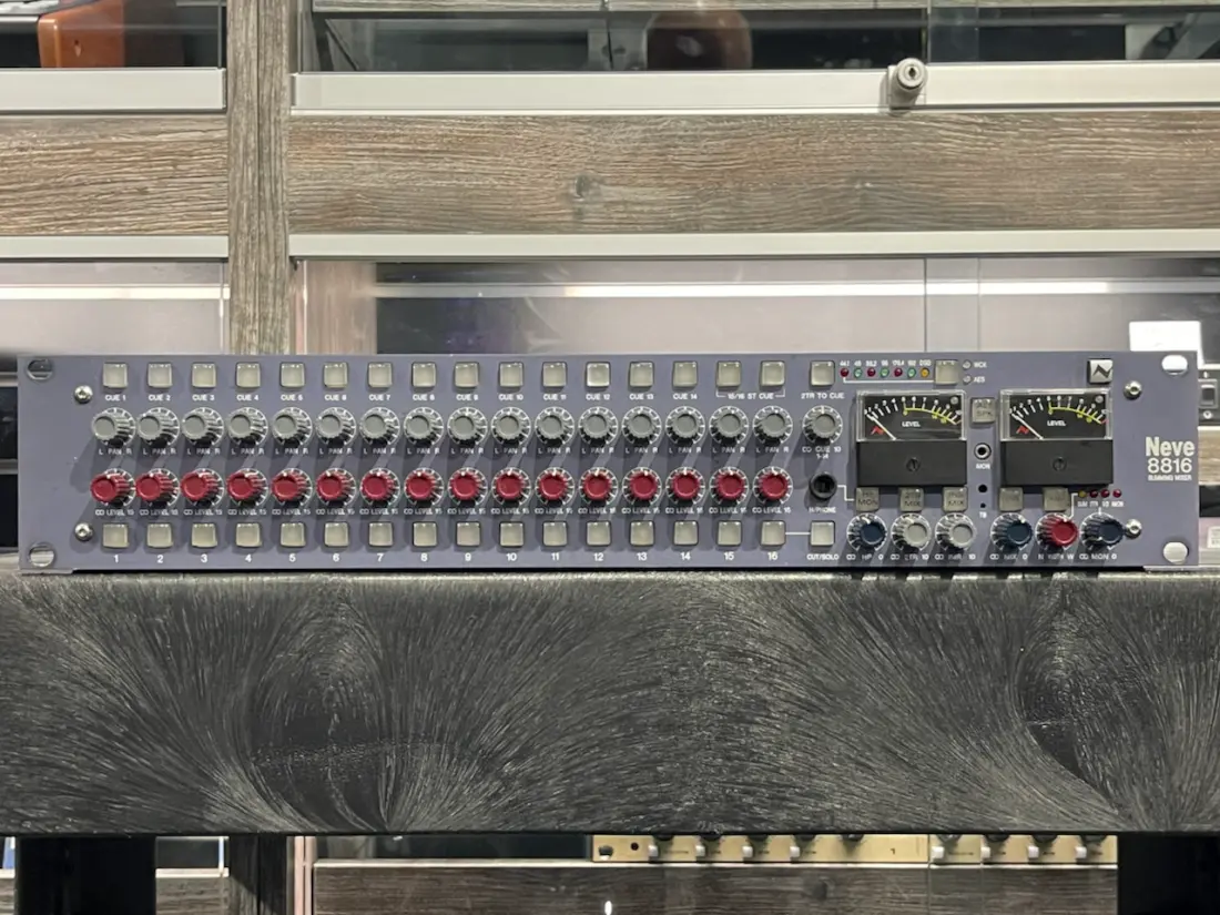 Packed with Neve® large-format console features, the 8816 is ideal for tracking in the studio. Independent cue sends from all 16 channels, multiple headphone connections & controls and a built-in talkback system, the 8816 is the complete recording package for the small studio.