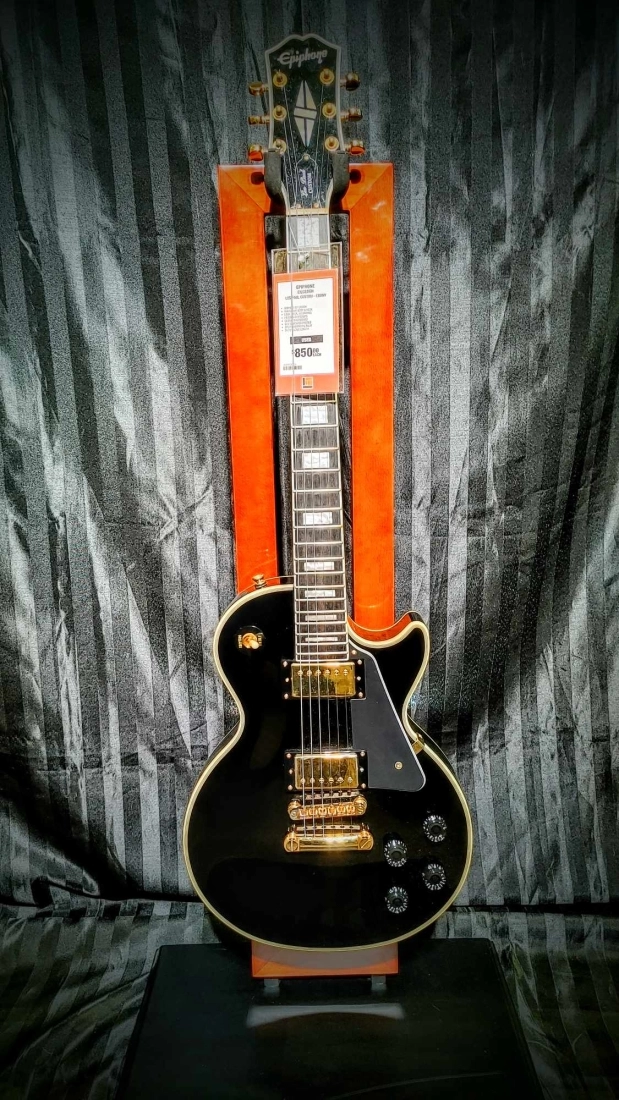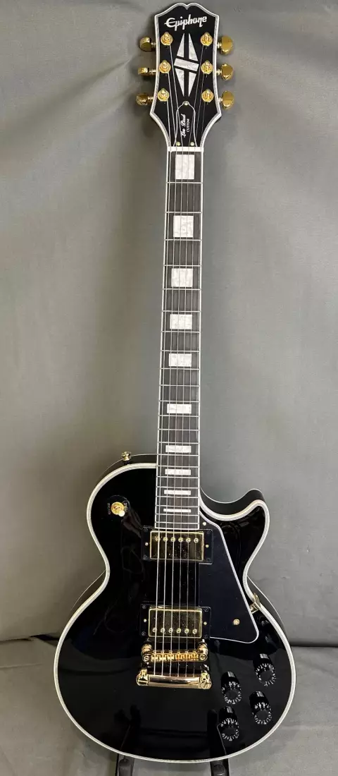 The new Les Paul Custom is part of Epiphones Inspired by Gibson Collection and honors the 1950s classic designed by Mr. Les Paul himself in 1954 as the "tuxedo" version of his groundbreaking solid body masterpiece. Featuring the traditional Custom bound all-mahogany body, 60s SlimTaper™ neck profile, ebony fingerboard with block inlays, gold Epiphone LockTone™ Tune-O-Matic™ bridge and Stop Bar tailpiece, a pair of critically acclaimed Epiphone ProBucker™ humbuckers, and Custom split-diamond inlay on the headstock. This Epiphone Inspired by Gibson model also has the 60s style Kalamazoo headstock, rolled neck for a comfortable feel, Graph Tech® NuBone® nut, era-appropriate wiring, and CTS® pots.