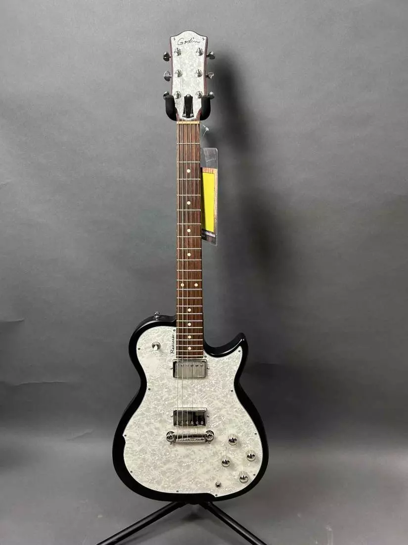 Your blues and rock licks will radiate like never before on the latest rendition of the Godin Radiator! Like its predecessor, originality, tone, and playability make up the main aspects of this Radiator reissue, along with a modernised design. The matching pickguard and headstock set the tone with their eye-catching looks, while string bends come to life thanks to the comfy short-scale Silver Leaf Maple Neck. Loaded with a pair of Custom Godin Humbuckers and twin volume and tone controls, the Radiator will surely unleash your most rocking riffs!