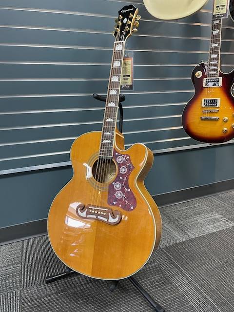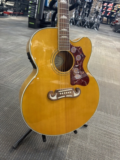 The J-200 EC Studio re-imagines the historic J-200 Jumbo acoustic guitar now featuring a Solid Spruce top, Grover Rotomatic machine heads and the Fishman Sonitone Pickup System.