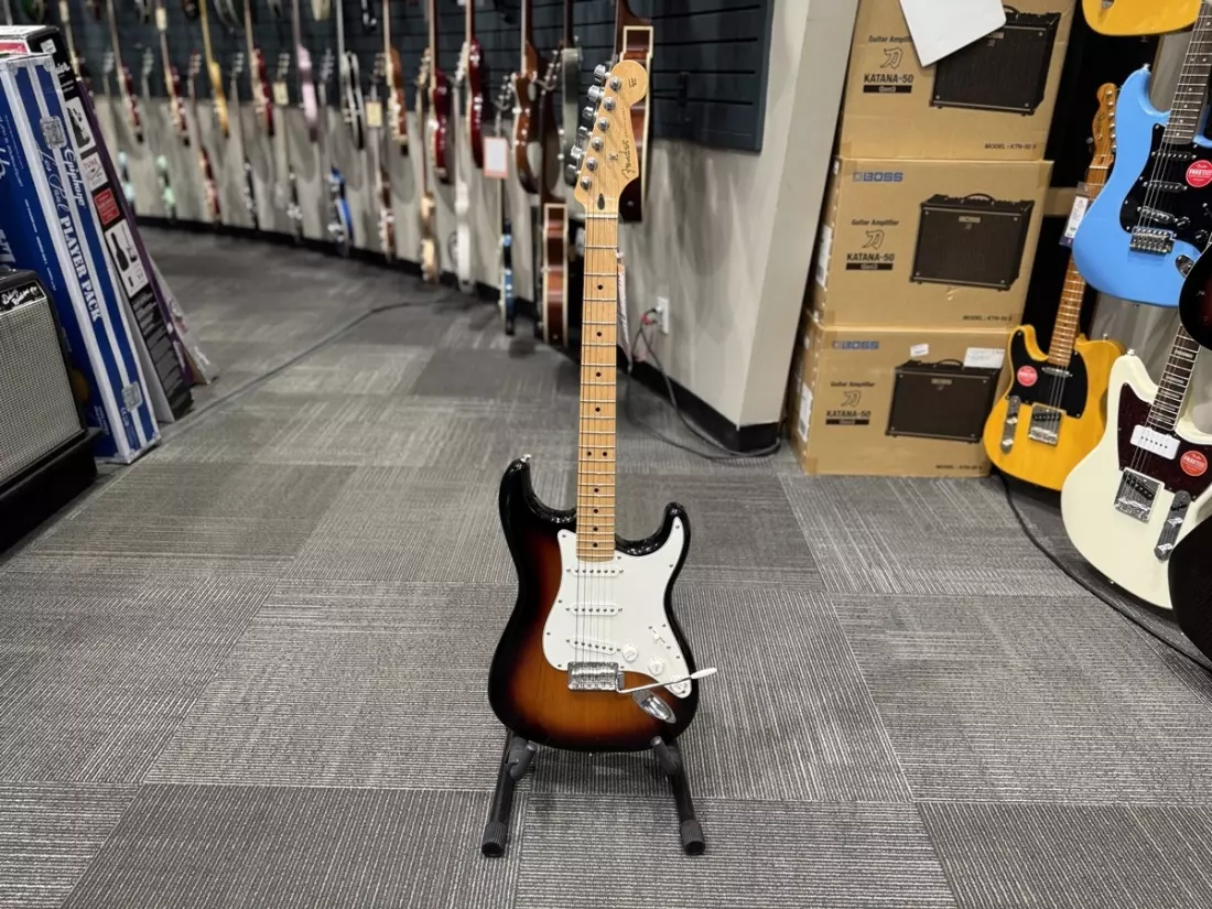 The power trio of Player Series single-coil pickups are crisp and articulate - it's authentic Fender tone with a modern edge. The "Modern C"-shaped maple neck's comfortable contours and smooth finish are ideal for almost any playing style. By adding a 22nd medium jumbo fret to the contemporary 9.5"-radius fingerboard we've made it easier to express yourself musically. The updated 2-point tremolo design has smoother travel for enhanced playing feel while simultaneously giving you rock-solid tuning stability since there's less friction against the posts.
