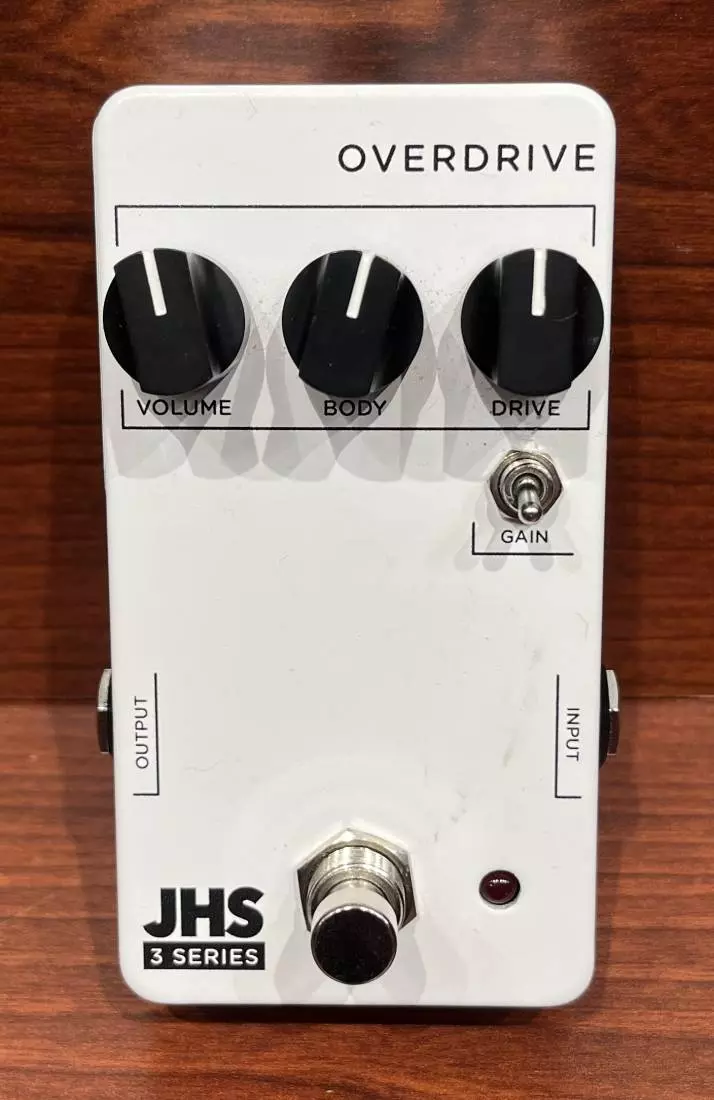The JHS Pedals 3 Series Overdrive offers a wide range of overdrive sounds - anything from boost and transparent low gain, to huge amp-like medium overdrive sounds. The simple knob functions give you control over the Volume, Body (or EQ), and Drive. The Gain toggle gives you a choice between more saturated and compressed or more open and crunchy dynamics. This switch plays a big part in how the pedal responds to your playing and touch as a player.