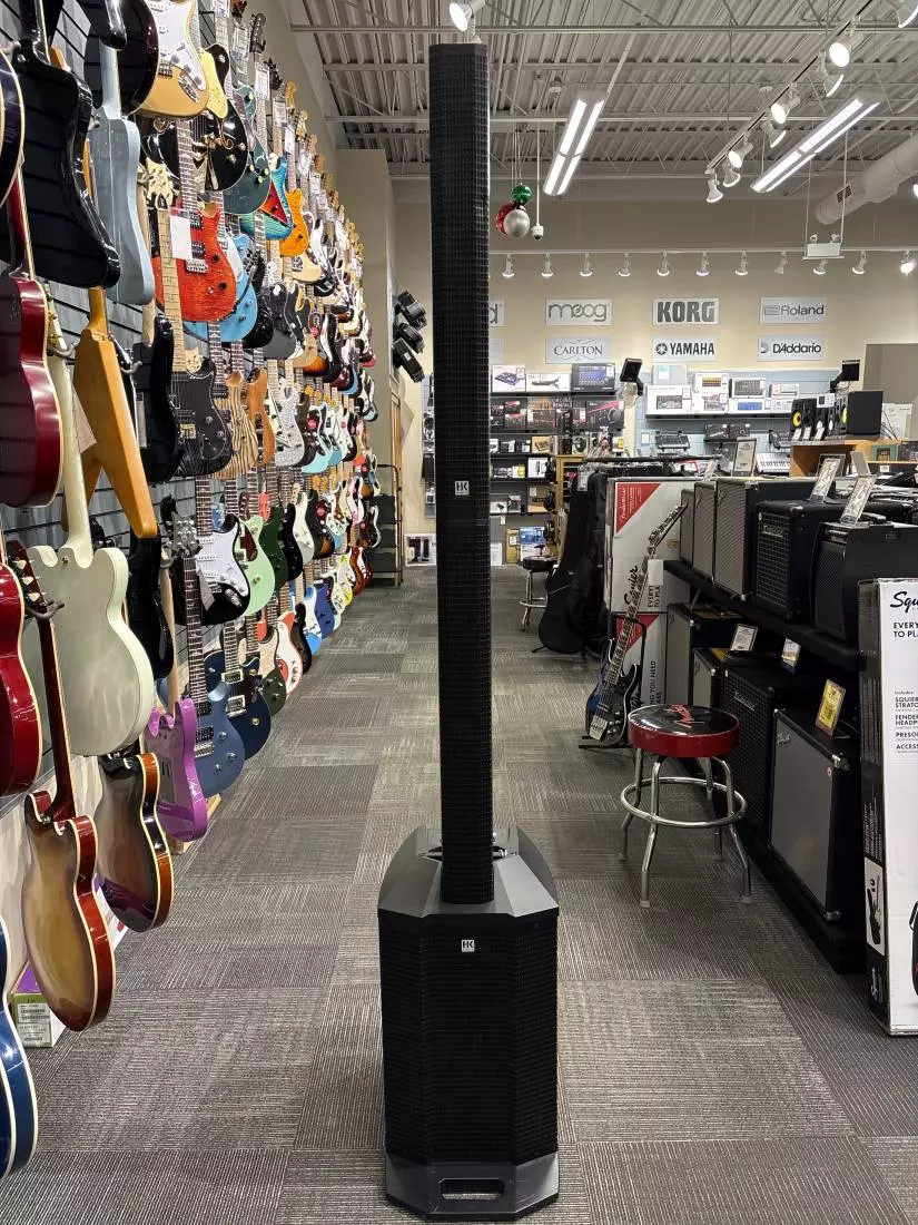 The midrange/HF column comes in two sections for easy transport. The top section is loaded with six high-performance 3 midrange drivers and a low-distortion, 1 constant directivity horn. The system delivers well-balanced, exceedingly natural sound, rendering everything from low-mid frequencies all the way up to 20 kHz with remarkable authority. Tuned to project an expansive 120 throw pattern and engineered to impede feedback, it gives users freedom choice when it comes to positioning the PA in venues. Placed behind the speaker or performer, it can also serve as a stage monitor to take the place of wedges in many scenarios.