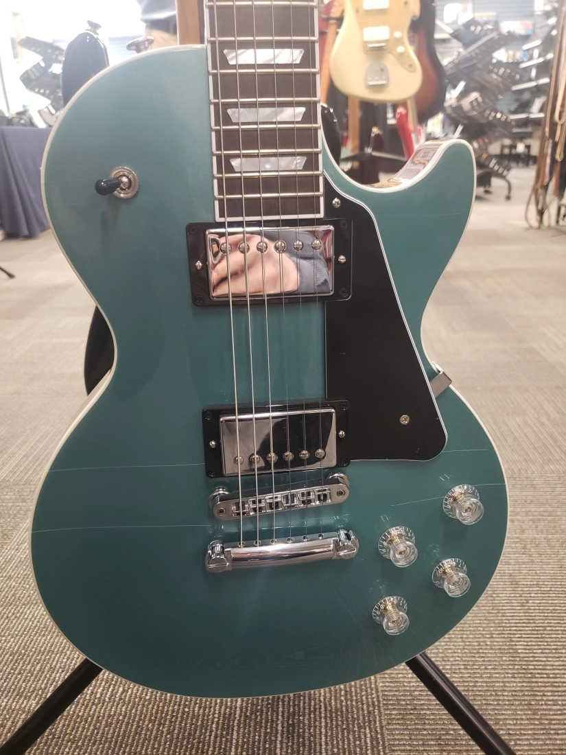 The new Gibson Les Paul Modern incorporates many contemporary updates that players have embraced such as lighter-weight bodies and innovative slim taper neck with asymmetrical profiles. The Modern fingerboard is crafted with genuine ebony and a compound radius for lower, and cleaner action. The neck/body joint features the new Modern contoured heel for effortless access to the highest frets as well as maximum sustain and stability. Hardware upgrades include Grover locking Rotomatic tuners, clear top hat knobs and BurstBucker Pro and BurstBucker Pro + pickups. The control assembly features 4 push-pull pots to switch between the Gibson humbucker and the single coil P90 sounds, both of which have defined so many genres of music across multiple generations since Gibson invented them, phase switching and pure bypass for functional and versatile sonic variety. The new Gibson Les Paul modern is here to shape sound for future generations.