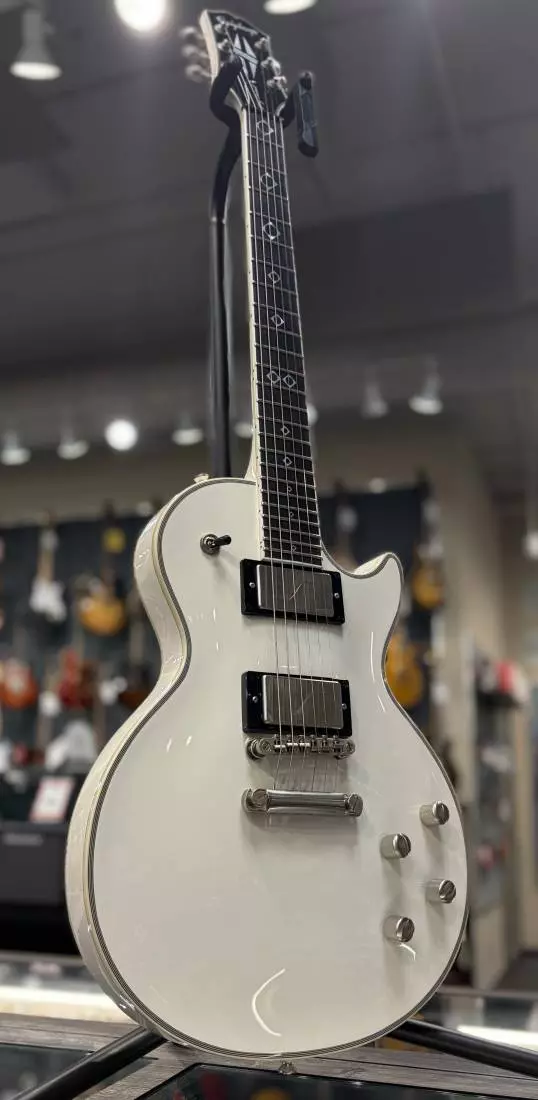 Made to the Alice in Chains guitarist's specifications, the new Jerry Cantrell Les Paul Custom Prophecy represents the perfect blend of modern and traditional features. It is equipped with a double-bound mahogany body with a maple cap and Ultra Modern weight relief for tone and comfort, a smooth-playing ebony fretboard with 24 jumbo frets, Grover locking Rotomatic tuners and a Graph Tech nut for rock-solid tuning stability, and custom-voiced Fishman Fluence pickups that deliver three distinct tones - a warm "Patent Applied For" vintage humbucker, hot modern humbucker, and a shimmering single-coil, all accessed by push/pull volume and tone pots. Jerry's personal touches abound, including a custom Cantrell neck profile, Circle in Diamond Custom fretboard inlays, his name on the truss rod cover, brushed nickel hardware, and a JJ circle logo on the rear of the headstock. A custom hardshell case is included.