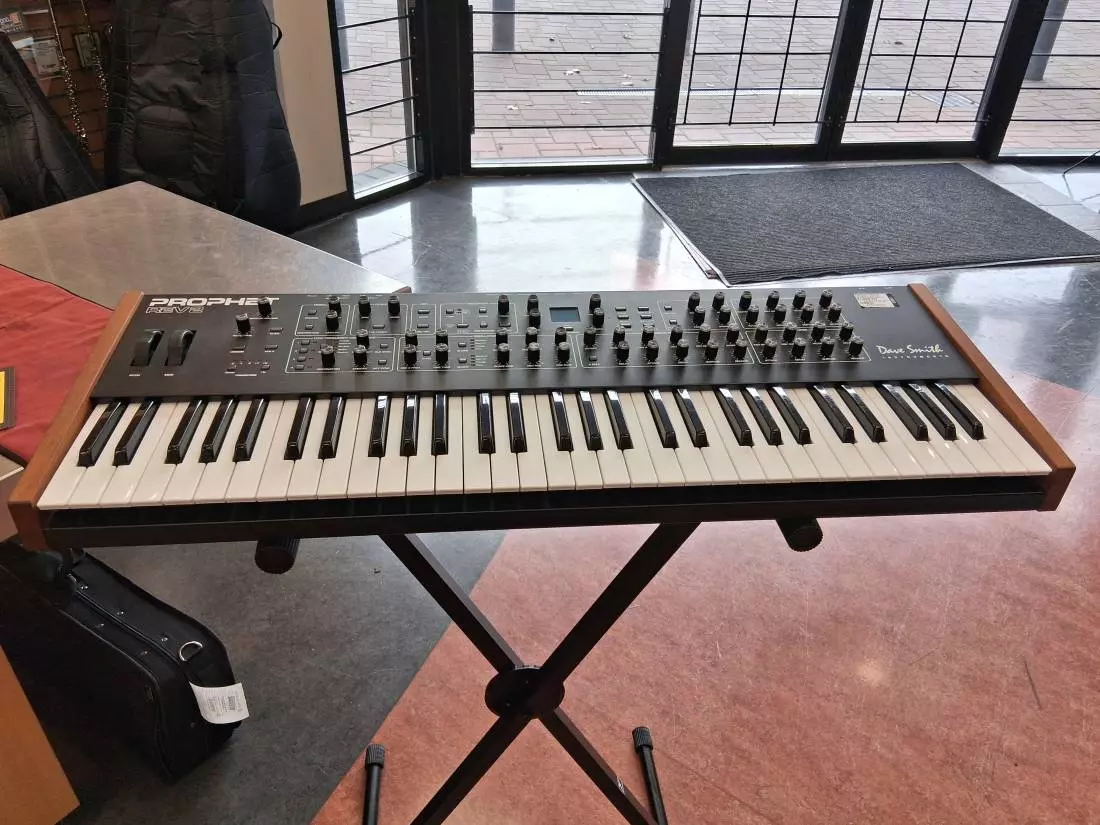 The Prophet Rev2 is Dave Smith's reimagining of his Prophet '08 poly synth - a modern classic that has appeared on countless recordings and stages since its debut in 2007. The Prophet Rev2 retains all of the key features of the Prophet '08 and expands on them. The Prophet Rev2 - available in an 8-voice or 16-voice version - has twice the polyphony (16-voice), twice the mod matrix, waveshape modulation on all waveforms, digital effects per layer in stacked or split voice mode, a polyphonic step sequencer per layer, and more. The result is a true analog powerhouse. Best of all, you can download any of the many existing libraries of Prophet '08 sounds and they will not only sound identical, but can be enhanced with the new features.