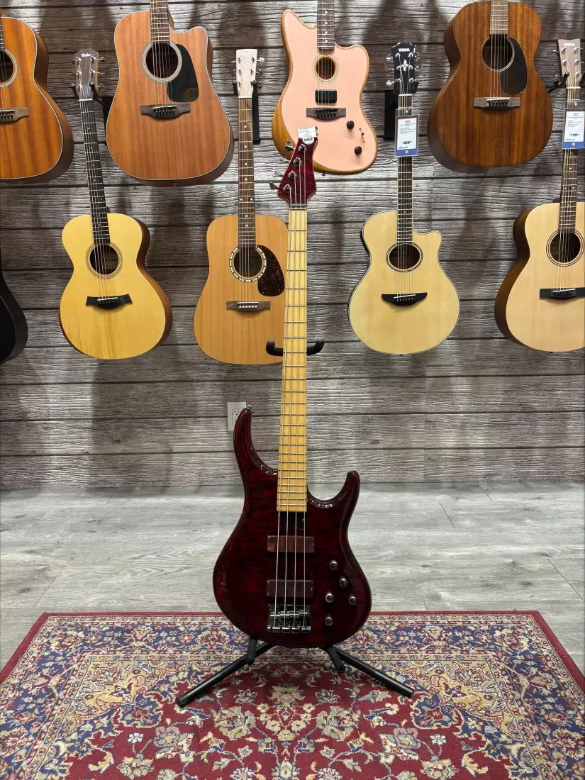 The Kingston Z series is available in 4, 5 and6-string models as well as fretless and left handed versions. It has a carved mahogany body which has a rich voice and a darker overtone. The maple burl top helps to focus the low end and is incredibly attractive. The two MTD proprietary passive soapbar pickups are wood covered and subtlety reinforce the wood beauty of the maple burl body top. The headstock matches the beauty of the body and the elegantly designed asymmetrical neck ties it all together. Case sold separately.