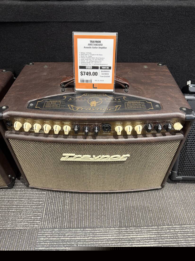 * The 150 watt Traynor AM Standard is the ideal compact standalone amp for small solo acoustic gigs. A true stereo design using two, studio monitor quality, 6.5-inch woofers and two, 1-inch neodymium dome tweeters, the Traynor AM Standard features two fully discrete input channels along with an auxiliary RCA input for CD or MP3 player.
