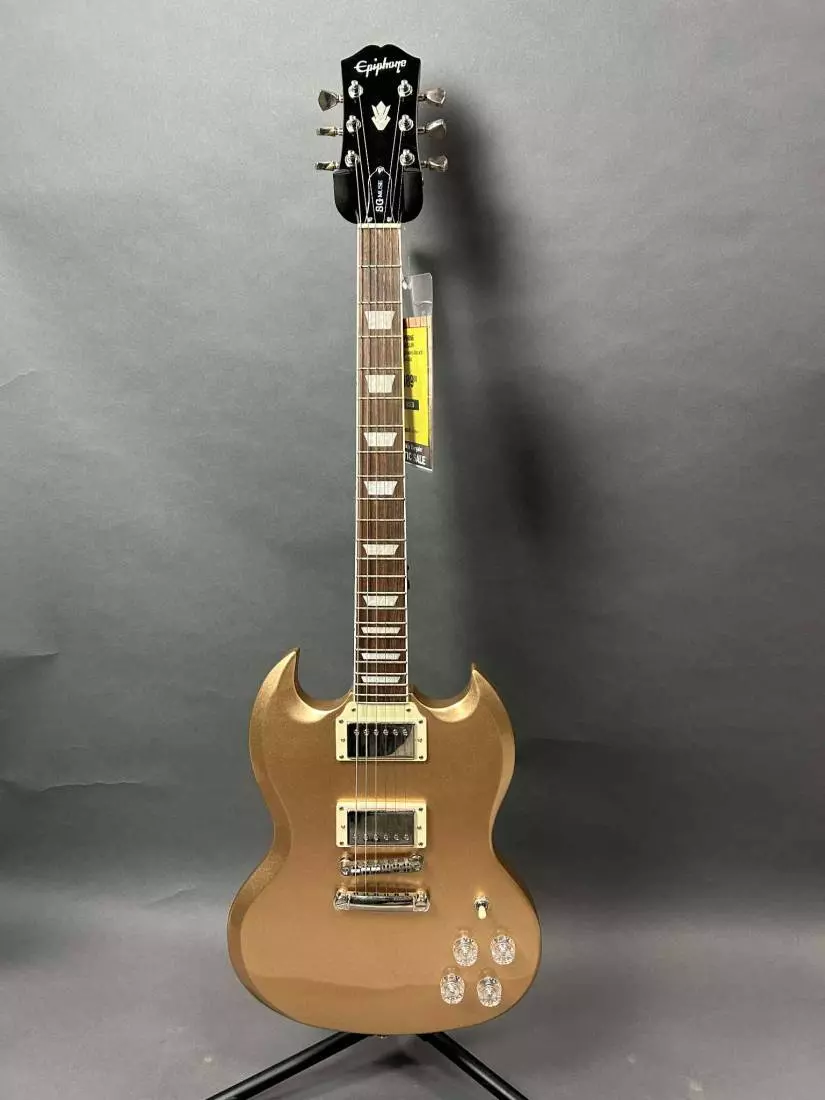 The Epiphone SG Muse from the new Inspired by Gibson Collection features a classic SG profile with a Mahogany body powered by high output Alnico Classic PRO™ humbuckers with coil-splitting and phase controls plus a treble bleed circuit to maintain clarity at lower volumes. Available in all new metallic finishes including Radio Blue Metallic, Wanderlust Green Metallic, Purple Passion Metallic, Smoked Almond Metallic, Pearl White Metallic, Jet Black Metallic, and Scarlet Red Metallic.