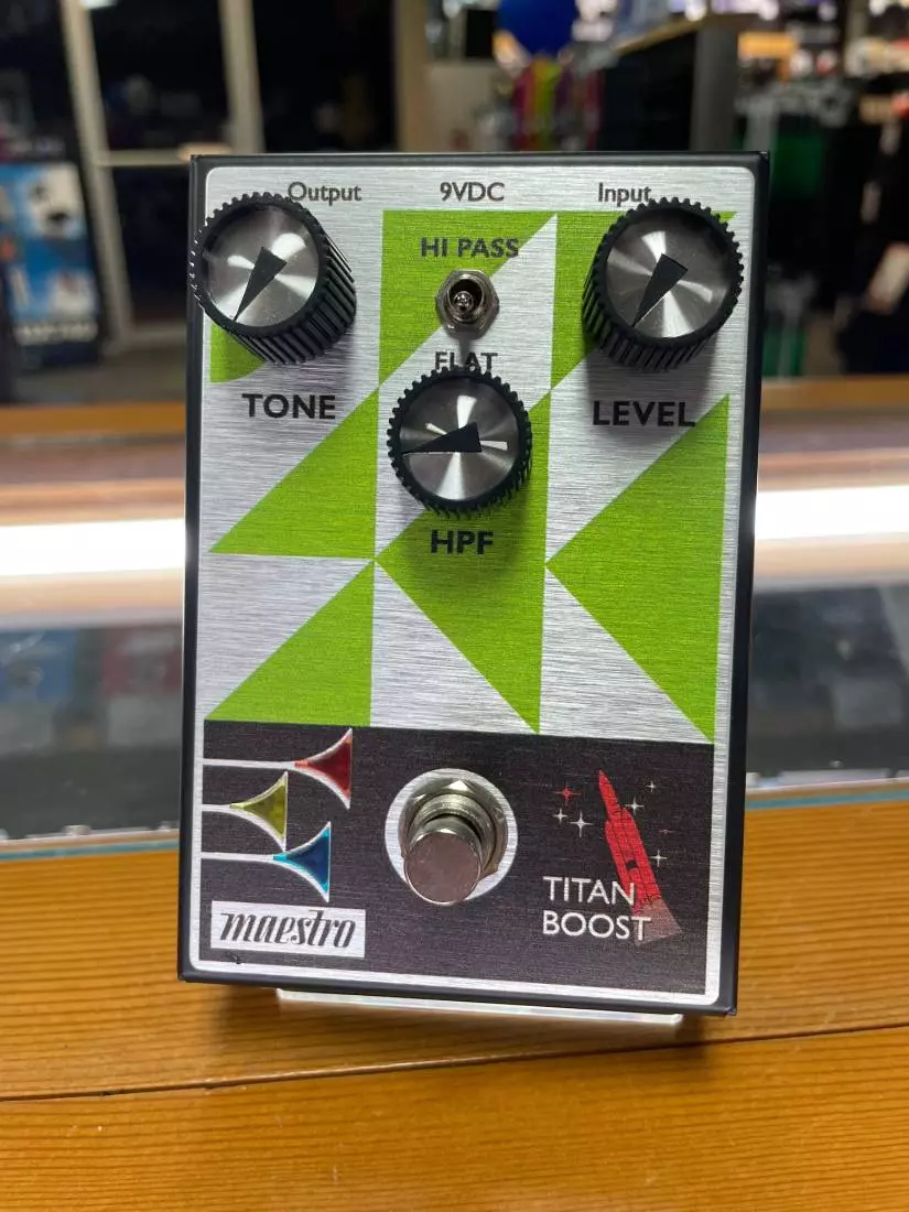 The Maestro Titan Boost provides over 25dB of clean boost, so it can easily drive any tube amp into natural overdrive. Even better, it's designed to be the ultimate tone-sculpting boost. Equipped with a classic Tone control and a variable HI-Pass filter, any high-frequency shrillness can be easily dialed out, and low-end muddiness can be well tamed. The Titan Boost creates the perfect boosted tone, regardless of guitar, pickups, or pickup switch position.