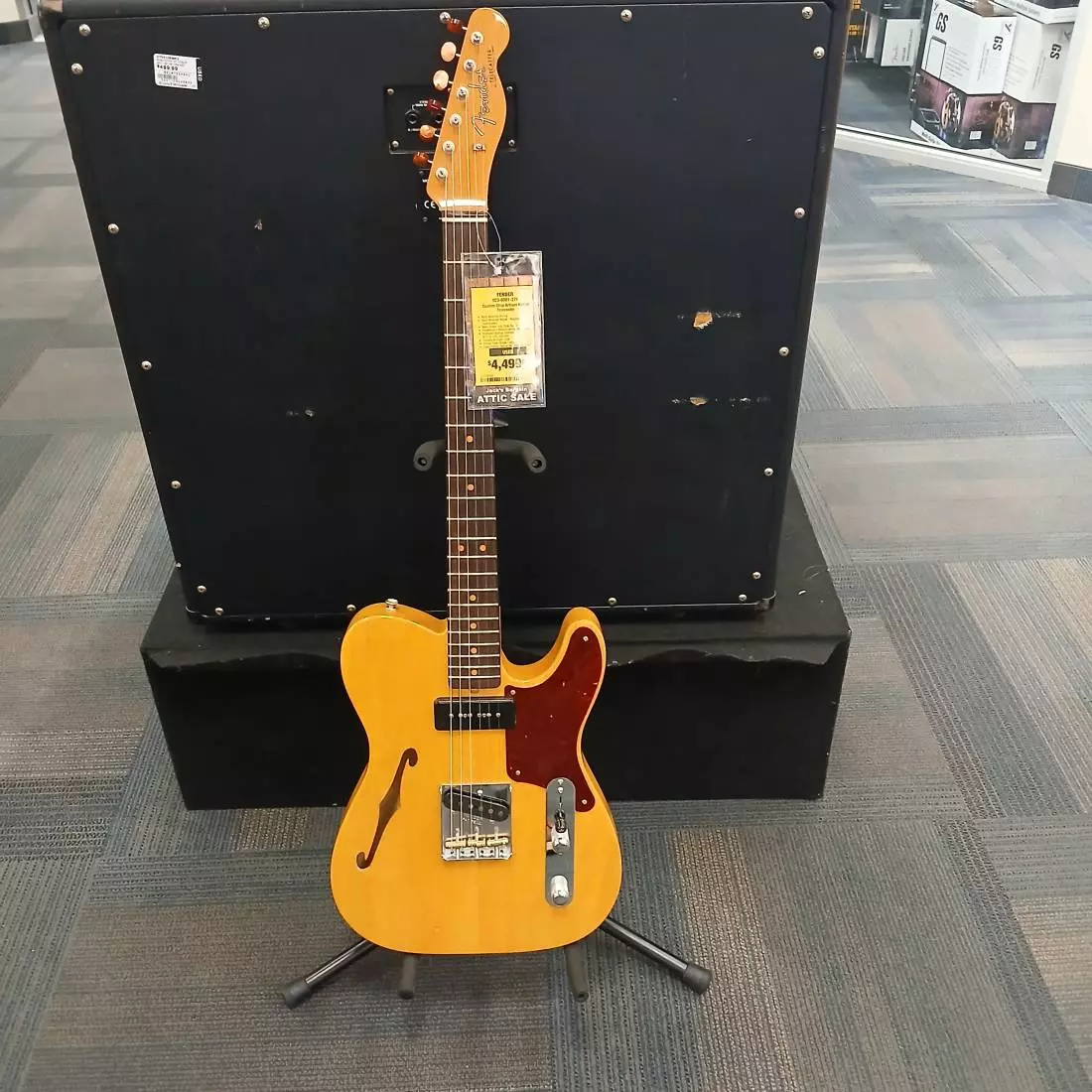 Other premium features include "Dual-Stack" HS Tele wiring, three-way pickup switch, single-ply brown shell pickguard, '58-'63 Tele bridge with Custom Shop RSD (Research Special Design) compensated brass saddles, vintage-style tuners, wing string tree, deluxe hardshell case, strap and certificate of authenticity.
