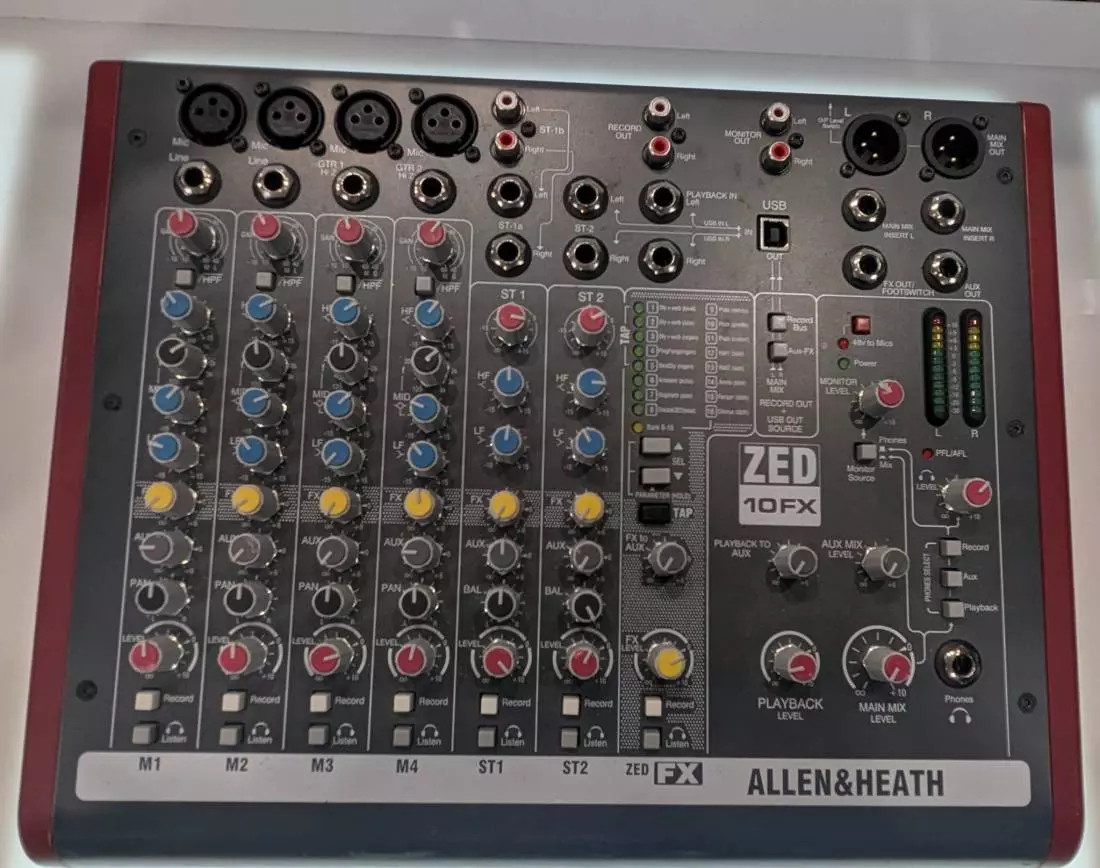 ZED-10FX is an amazing little desk for small band mixing. It is ultra portable for carrying to the gig, and can be used for recording live or in the studio. It comes with configurable USB audio in/out making it easy to capture stereo recordings.